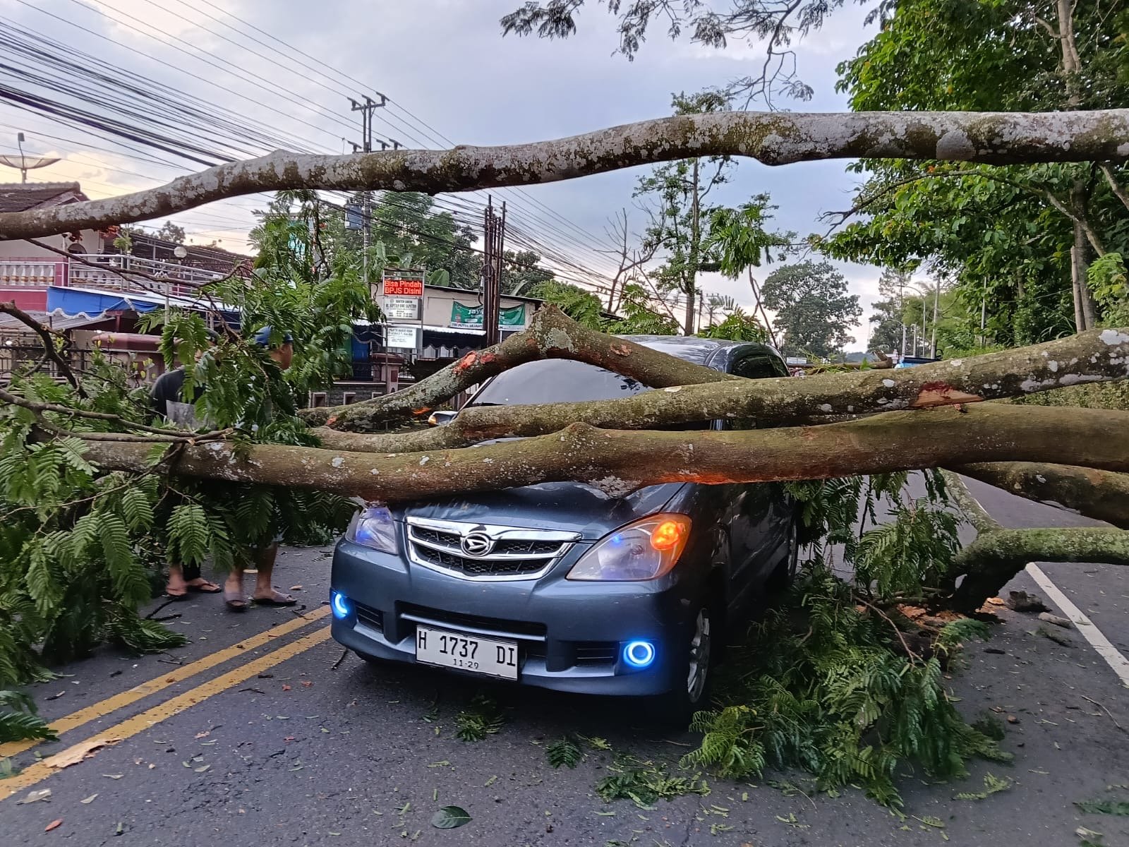Dalam kejadian tersebut, sebuah minibus Daihatsu Xenia bernomor polisi H 1737 DI yang dikemudikan Joko (41), warga Kecamatan Kaliwungu, menjadi korban tertimpa pohon saat melintas di lokasi kejadian. Beruntung, pengemudi berhasil selamat dari insiden tersebut.