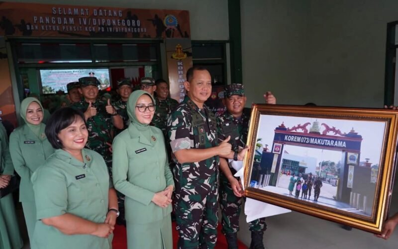 SALATIGA | BESOKLAGI.COM – Pangdam IV/Diponegoro Mayjen TNI Achiruddin Darojat, S.E., M.Han., melakukan kunjungan kerja ke Korem 073/Makutarama, Jumat (19/9/2025). Kedatangan Pangdam bersama Ketua Persit Kartika Chandra Kirana Daerah IV/Diponegoro disambut hangat oleh Danrem 073/Makutarama Kolonel Arm Ezra Nathanael, S.Kom., M.M., M.Han., beserta jajaran di Balai Prajurit Makutarama, Jalan Veteran Tegalrejo, Argomulyo, Salatiga.
