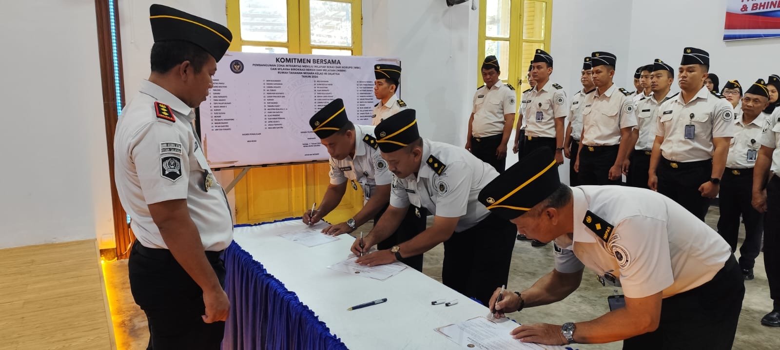 Sebagai wujud nyata keseriusan tersebut, Kepala Rutan Salatiga bersama seluruh jajaran petugas melaksanakan penandatanganan Komitmen Bersama dan Pakta Integritas, yang berlangsung pada Senin (09/02).