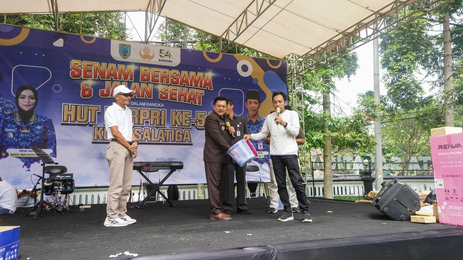 Selain senam dan jalan sehat, peringatan HUT KORPRI ke-54 juga dimeriahkan oleh berbagai lomba antar-Organisasi Perangkat Daerah (OPD) serta pembagian doorprize. Wali Kota, didampingi Pj. Sekretaris Daerah dan Wakil Direktur Administrasi dan Keuangan RSUD Kota Salatiga, turut mengambil undian doorprize utama berupa dua kulkas, satu mesin cuci, dan empat sepeda gunung.